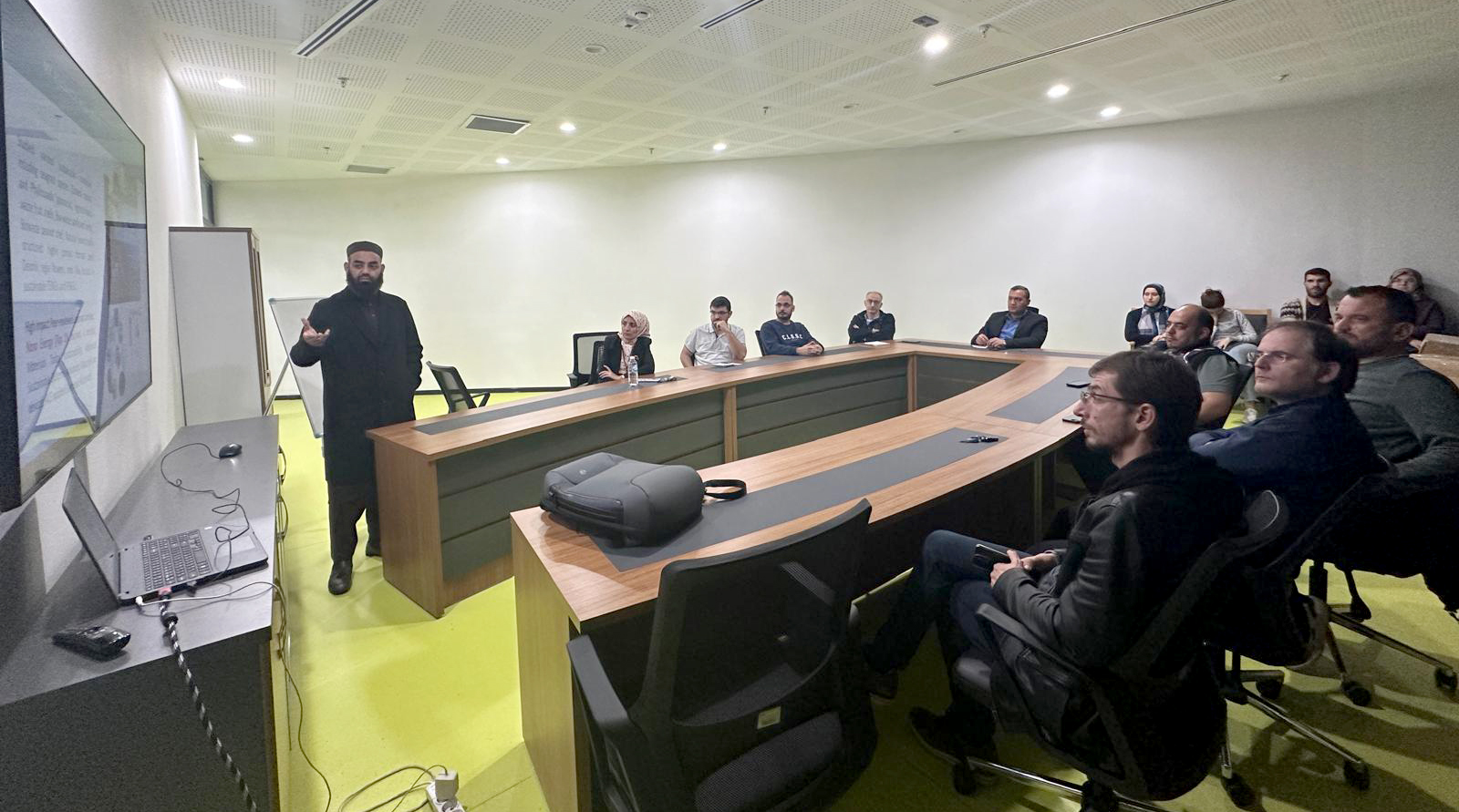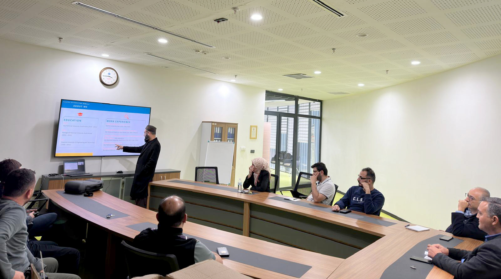 Toplantıda ayrıca, bölüme yeni katılan Dr. Öğr. Üyesi Qazı Muhammad SAQIB çalışma alanları hakkında kapsamlı bir bilgilendirme sunumu yaptı. Dr. SAQIB, araştırma ilgi alanlarını, yürüttüğü projeleri ve gelecekte bölüm bünyesinde gerçekleştirmeyi planladığı akademik çalışmaları öğretim üyeleriyle paylaştı. Katılımcılar, bu sunumun bölümün bilimsel üretkenliğine ve uluslararası iş birliklerine önemli katkılar sağlayacağı yönünde görüş bildirdi.